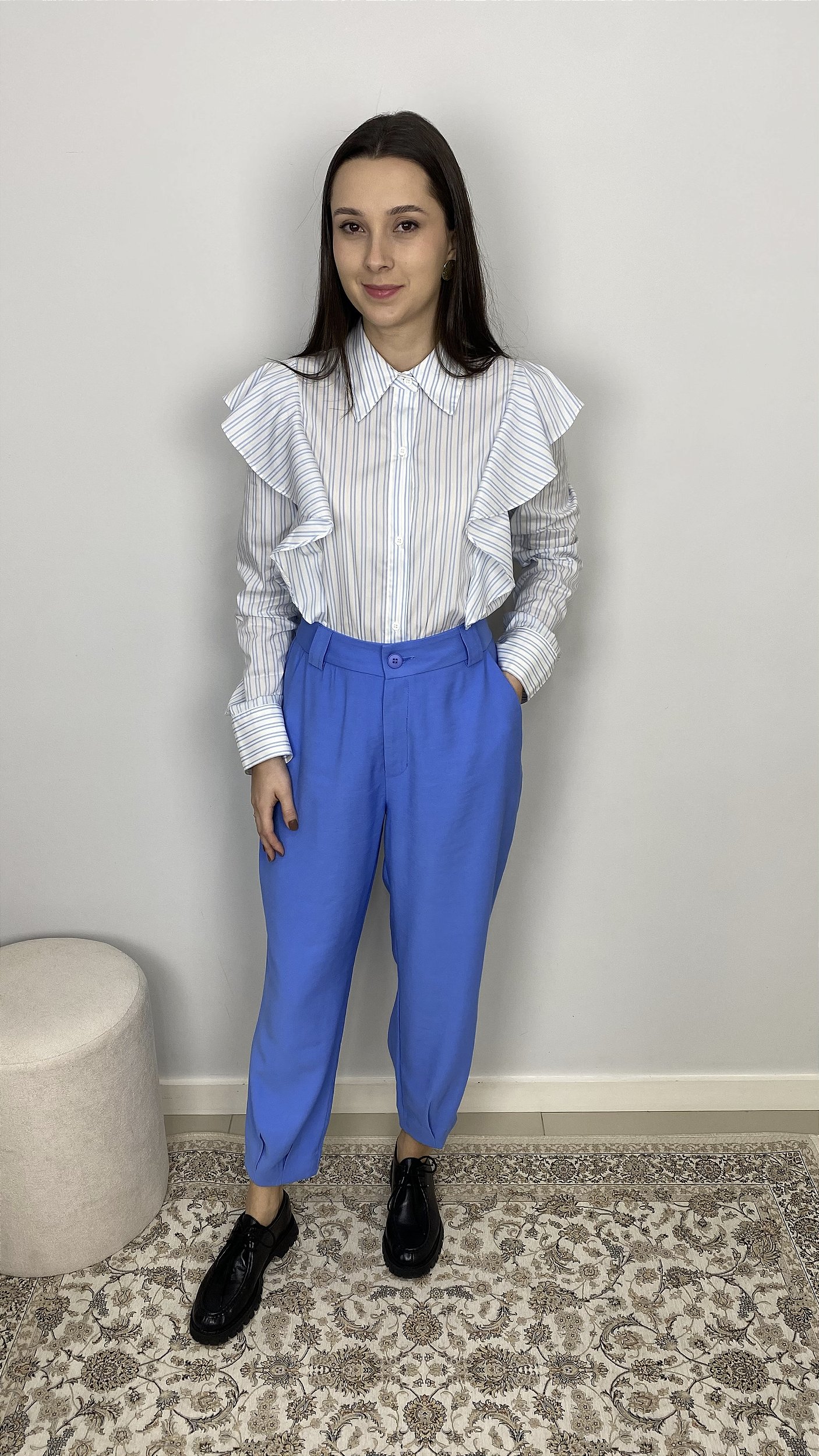 Descrição: Calça com cós reto sem elástico, passantes para cinto, fechamento por zíper e botão acrílico, bolsos laterais funcionais, bolso cargo falso nas costas. Modelagem cenoura com 4 pregas no punho da barra.