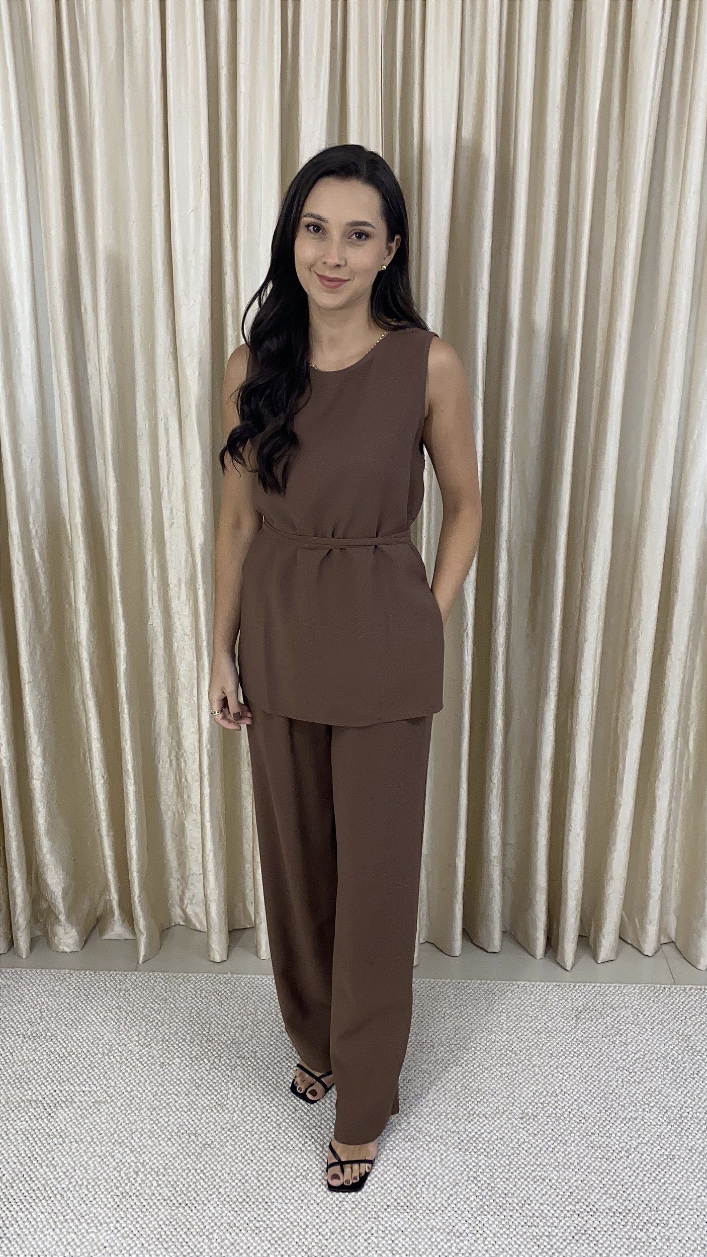 Este conjunto feminino de alfaiataria foi pensado para quem busca conforto e elegância. Seu design contemporâneo é a escolha ideal para quem busca praticidade e estilo, com uma estética minimalista.